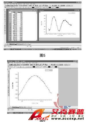 在計(jì)算機(jī)的開始程序列選項(xiàng)中選取OriginPro7.0程序,并選中OriginPro7.0選項(xiàng),然后打開菜單欄File中ImportASCII項(xiàng),鍵入所存的CSV文件名并打開,脈沖反射波形的相關(guān)數(shù)據(jù)參數(shù)將自動(dòng)存入到數(shù)據(jù)列表格中。同時(shí)打開與數(shù)據(jù)列表中相應(yīng)數(shù)據(jù)的波形曲線圖,見圖5。