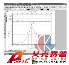 打開菜單欄Analysis下拉式菜單,選中FFT選項(xiàng),對(duì)圖6所示的脈沖反射波形進(jìn)行傅立葉變換。根據(jù)被測(cè)探頭的頻率標(biāo)稱值,在頻譜圖橫坐標(biāo)中選取相應(yīng)的頻率范圍值(這一范圍值通常為0MHz到被測(cè)探頭頻率標(biāo)稱值的2倍),這樣就得到了理想的脈沖反射頻譜圖。在脈沖反射頻譜圖上,把脈沖反射響應(yīng)曲線上的頻率峰值點(diǎn)下降6dB處(頻率響應(yīng)曲線的峰值點(diǎn)下降一半處)的fL和fH值定義為帶寬的低值和高值,兩者之間的算術(shù)平均值即為被測(cè)探頭的回波頻率,見圖7。