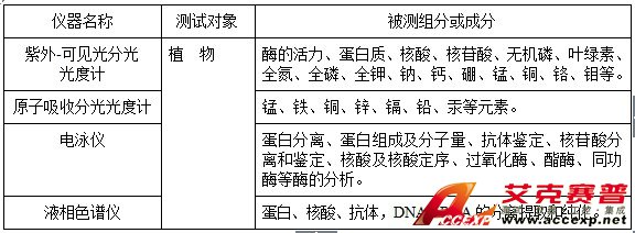 表5 分析儀器在植物生化分析和生物技術中的應用
