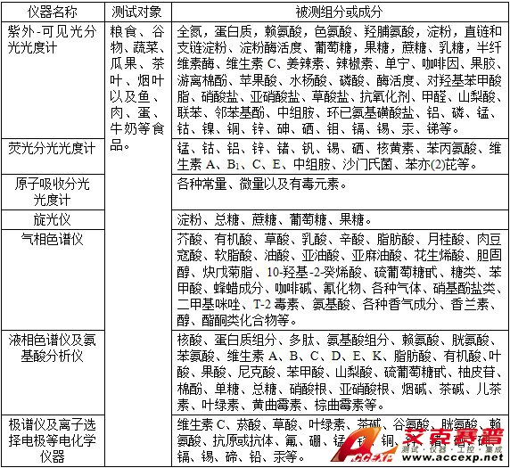 農業包括種植業、林業、畜牧業、漁業和農副產品加工業(國外多將農業與食品歸為一個領域)。與其他領域一樣,科學儀器和檢控儀器,作為信息技術的源頭,也必然是農業科技發展的“摧化劑”、農業現代化和可持續發展的“倍增器”。如今科學測試和檢控儀器已滲透到現代農業的各領域和環節(見附表1),既涉及動植物本體的性狀、生理、生態和環境因子及其產品品質的測試分析,也涉及產品在儲運、保鮮和加工中的檢控。過去有一種錯覺、多認為農業比較粗放,對儀器的技術要求不高、品種不多,其實農業各方面需分析測試和檢控的對象極廣泛,從動植物群體、個體到細胞、基因、分子,從有機到無機,從檢測生態環境到模擬甚至創造特定的生態環境,其對象多是生物體,而使用條件又比工業使用環境更惡劣的田間、現場。所以,在農口凡屬較深層次的科技項目和較大規模的精細農業生產,當今我國科學儀器的許多技術指標、性能、應用條件尚難滿足實際需求。但是,我國儀器儀表行業歷經波折和努力之后、還是取得了長足的發展。據我們對農業和食品業抽樣統計,按臺數計算、省級和地(市)級國產儀器占有率約占70%以上,而縣級部門幾乎都用國產儀器。現以農業幾個方面和我國已公布實施的農業和食品業的幾個標準為例,概述幾種通用的分析儀器在農業和食品業應用狀況和法定地位,提出農業現代化對科學儀器的新需求,以及振興我國科學儀器、研發農業專用儀器具體建議。