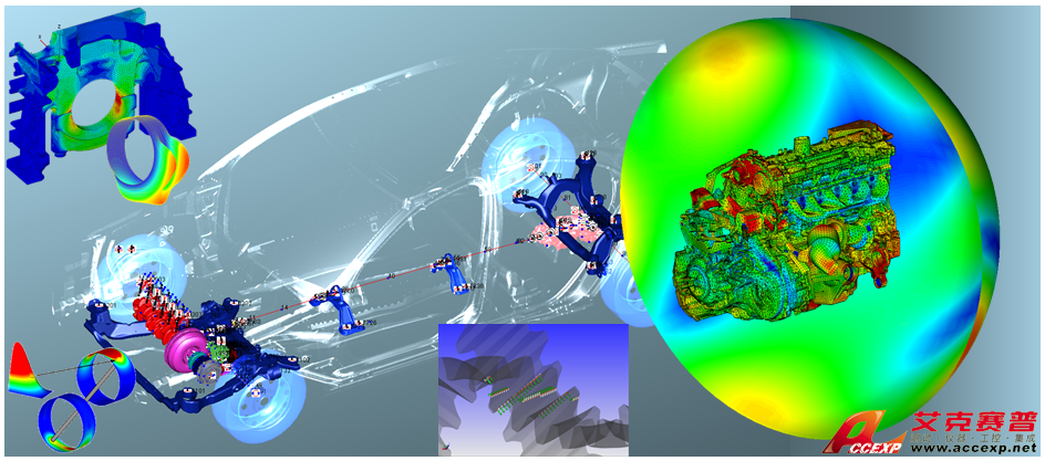 Accexp解決方案EXCITE POWER UNIT使用高精度且可靠的數學模型精確地重現動力總成真實的工作狀態,為動力總成及傳動系統提供結構動力學、耐久性及振動噪聲的詳細解決方案。其貫穿于動力總成的概念設計、詳細設計以及故障診斷等產品生命周期全過程。且適用于從獨立的零部件級到子系統級再到系統級模擬分析的不同層級、不同深度的分析評估。