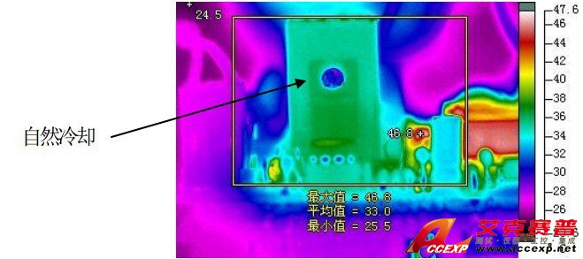 電源冷卻技術是滿足行業各項技術性能要求的基本手段。目前各個電源模塊常用的冷卻方式有自然冷卻、純風扇冷卻、自然冷卻和風扇冷卻相結合三種。電源產品中有很大的一個變壓器,還有些大的電容,這些都是大熱源,這些熱源可能會給您的產品內部一些其它電路及其元器件的穩定性、使用壽命都會帶來很大影響。利用紅外熱像儀,可以非常直接的測量出三種情況下的發熱和散熱情況,工程師改善設計,在實際應用使用合理的冷卻手段,提高電源的可靠穩定性,減少設備的故障率。