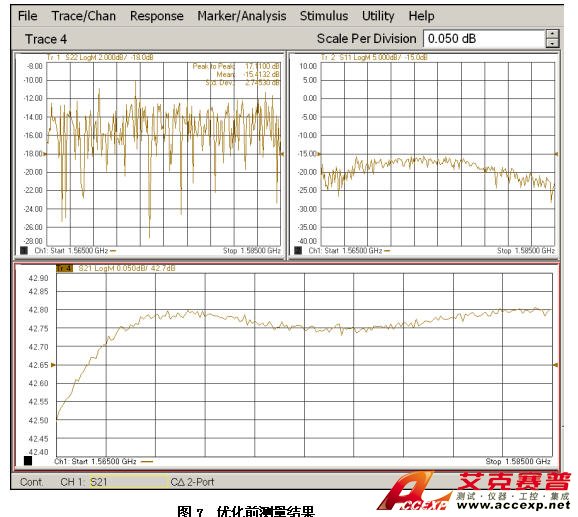 現(xiàn)代的LNA設(shè)計(jì)指標(biāo)越來(lái)越好,優(yōu)異的LNA性能對(duì)傳統(tǒng)的參數(shù)測(cè)量方法提出了很大挑戰(zhàn),但是通過(guò)合理地設(shè)置網(wǎng)絡(luò)分析儀以及優(yōu)化校準(zhǔn)過(guò)程,可以獲得較高的測(cè)量精度。
