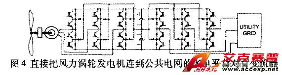 風力渦輪發電機市場的趨勢是依據電壓和電流額定值,提高其標稱功率(幾兆瓦)。這使多電平變流器剛好適合這種現代大功率風力渦輪發電機的應用。電壓額定值的提高,允許把風力渦輪發電機的變流器直接連接到風電場的配電網絡,避免使用笨重的變壓器(見圖4)。