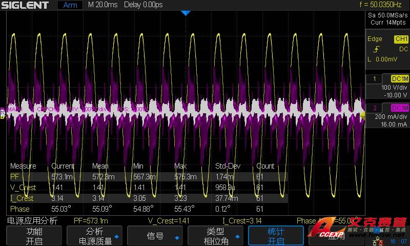 我們通過(guò)測(cè)試功率和分析諧波來(lái)展示SDS2000X的電源分析功能。