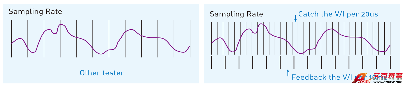 ▲一般充放電機取樣速度示意圖 ▲Chroma充放電機取樣速度示意圖