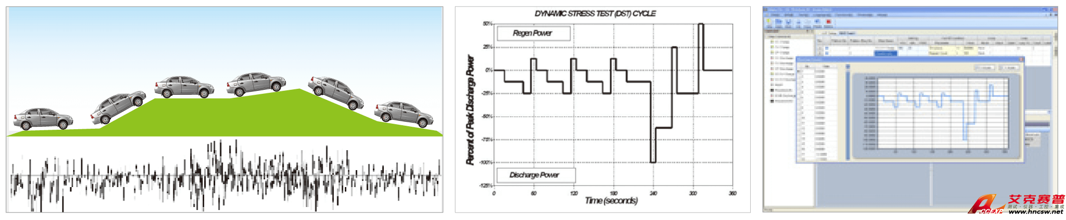 支持動態工況仿真(Waveform)測試功能,仿真實際行車路況之電流或功率狀態,支持NEDC、FUDS、HPPC等法規測試標準