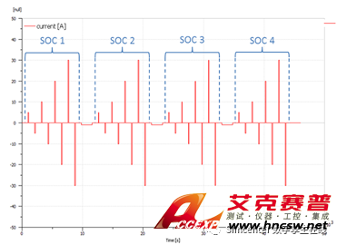 在做擬合之前,建議輸入Amesim軟件中推薦的下圖電流數據。分別作某一溫度下(比如25攝氏度),不同恒定SOC1、SOC2、SOC3、SOC4等的短時不同倍率電流下的充放電試驗。