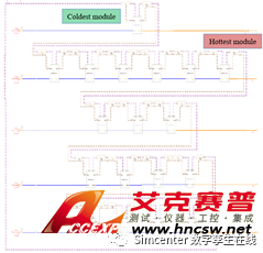 動力電池組熱管理系統需要各個單電池工作在合理溫度范圍內的同時盡量維持包內各個電池及電池模塊間的溫度均勻性。Simcenter Amesim軟件能夠針對風冷和水冷等不同冷卻方案進行仿真研究,為研究和開發電池包熱管理系統提供了設計指導和優化。