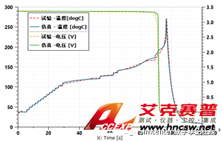 Amesim中能夠根據電池用ARC對熱失控進行絕熱的熱失控實驗數據來分析電池的熱失控過程,標定電池熱失控過程中的溫度變化和電壓變化。