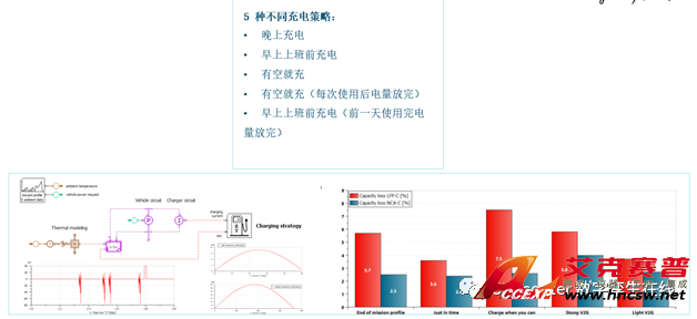例如分析不同的充電策略在一年的使用過程中分別對LFP_C和NCA三元兩種電池老化趨勢的影響,在系統模型中定義相同的邊界條件(一年中的環境溫度變化),以及相同的使用工況,即每天上下班四次的NEDC使用工況。