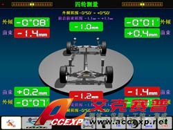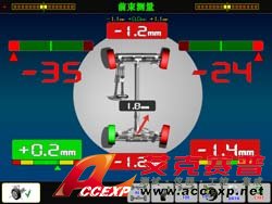 測量系統:外傾角設計了以車輪傾斜和顏色的變化來區分;總前束、獨立前束設計了以車輪的變動和顏色來區分 |
