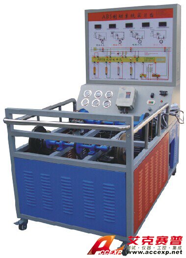 桑塔納2000 ABS閥體總成、ABS控制單元、前碟后鼓制動機構、輪速傳感器及信號盤;面板鐵柜、彩色原車電路原理圖、油壓原理圖、調速電機、變頻器及經高溫噴塑處理帶滾輪臺架。