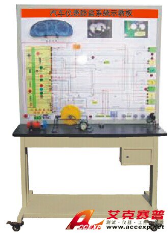 發動機電控單元、水溫傳感器、燃油傳感器、車速傳感器、曲軸傳感器及信號盤、儀表、檢測端子、故障設置系統、大容量蓄電池或12V開關電源、大型彩色噴繪電路原理圖、控制面板、可移動臺架、使用說明書及實訓指導書等。