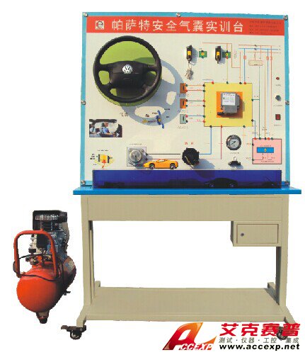 安全氣囊電控單元、安全氣囊總成、方向盤、碰撞傳感器、彈性線束、空氣泵總成、檢測端子、故障設(shè)置系統(tǒng)、大容量蓄電池或12V開關(guān)電源、大型彩色噴繪電路原理圖、控制面板、可移動臺架、使用說明書及任務(wù)驅(qū)動式實(shí)訓(xùn)指導(dǎo)書等。