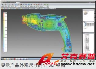 全局比較功能可提供產品外觀尺寸的全 3D 視圖。整個部件可與 CAD 模型進行對比檢查,并用色彩映射高亮顯示需要關注的區域。還可使用彈出菜單、截面圖和幾何尺寸與公差(GD&T)庫進行進一步的研究和分析。用戶可根據需要讓設備自動生成或簡易或詳細的測量報告。