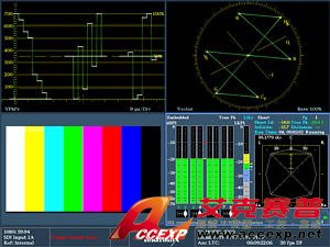 泰克公司的波形顯示器具有清晰明亮的類似CRT的顯示跡線質(zhì) 量,這樣在用戶看來就如同一臺(tái)模擬顯示器。利用我們熟悉的 波形顯示可以提供SD/HD/3G-SDI 信號(hào)的RGB 顯示、YpbPr 顯示或者YRGB顯示甚至是仿復(fù)合信號(hào)顯示。儀器可以在并列 模式中或者疊加模式中給出各個(gè)信號(hào)分量的顯示圖形。利用波 形顯示中的光標(biāo)可以精確地實(shí)現(xiàn)被測(cè)信號(hào)的電壓測(cè)量和時(shí)間測(cè) 量。儀器的矢量顯示提供了可由用戶選擇的刻度、彩條指標(biāo) (75% 刻度或者100% 刻度)以及彩色軸。