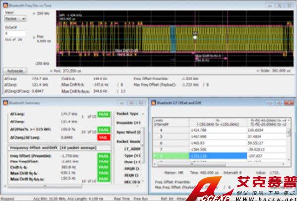增加了兩個新選項,幫助您在時域、頻域和調制域中進行基于 Bluetooth SIG 標準的發射機 RF 測量。選件 SV27 支持 RF 規定的基本速率和低能耗發射機測量。TS.4.2.0?和 RF-PHY。TS.4.2.0?測試規范。它還解調并提供增強數據速率數據包的符號信息。選件 SV31 支持藍牙 5?標準(LE 1M、LE 2M、已編碼 LE)和核心規范中規定的測量。這兩個選件也解碼所傳輸的物理層數據并使用顏色編碼符號表中的數據包字段以便清晰標識。