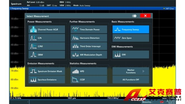 R&S FPL1000 不僅支持頻譜測量,而且支持使用功率探頭的高精度功率測量以及模擬和數(shù)字調(diào)制信號分析。
