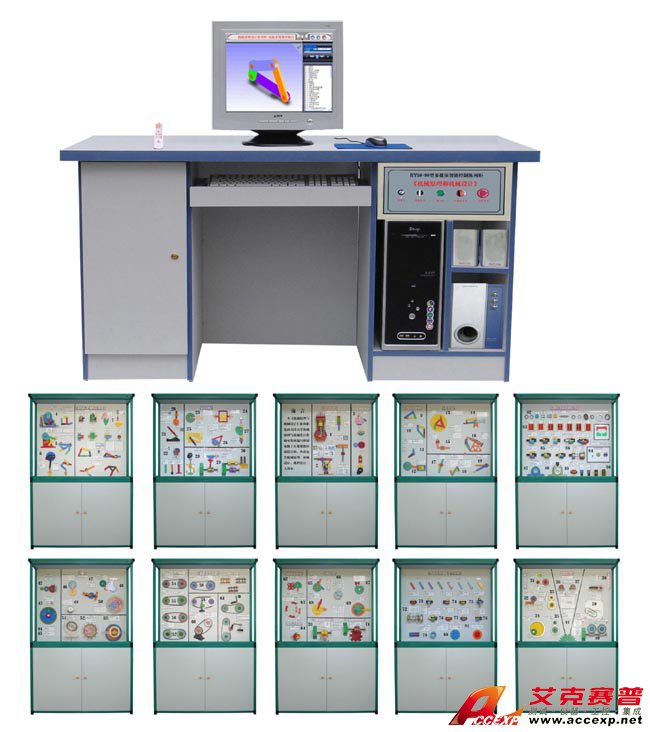 TSI 10-90型多媒體智能控制《機械原理與機械設計》陳列柜是根據天津大學機械原理與機械設計教研室集體編寫的國家級十五規劃教材而設計的一套電化多媒體教學設備,內容包含機械原理、機械設計、課程設計三大部分。陳列柜共分十個柜和一個電腦控制臺,進行多媒體聲控同步解說演示。由PC機電腦控制順序或任選運行每個柜模型動作,同時電腦播放圖形同步模型動作。并且每個柜的內容在電腦里用PPT格式編寫,內容包含機械原理、機械設計、課程設計等教程數據,采用Microsoft PowerPoint 演示文稿進行幻燈片放映,方便學員課外進行學習和研究。TSI 10-90型多媒體智能控制《機械原理與機械設計》陳列柜上下柜整體采用彩色塑鋼結構,堅固耐用,外形美觀。