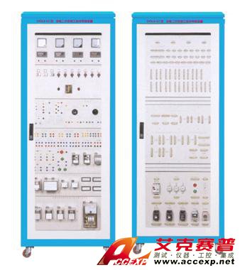 采用機柜式結構, 規格尺寸2000×800×600mm, 機柜下方提供三相可調交流電壓、三相可調交流電流、直流操作電源等。機柜上方提供所需的儀表,如直流電壓、電流表,交流電壓、電流表。機柜中間部分為國際慣用的萬能網孔板式設計,器件的安裝位置可自由安放,最大限度地發揮學生的動手能力,學員可根據實訓項目的組合成相應的實訓電路,完成實訓項目的接線工藝的實訓。機柜后面的兩側分別裝有接線端子排(包括有電流端子和電壓端子)。此外柜內還設有供照明用的18W日光燈。元器件包括適量的800Ω可調電阻、電流繼電器、電壓繼電器、指示燈、中間繼電器、時間繼電器、信號繼電器、沖擊繼電器、閃光繼電器、重合閘繼電器、跳躍閉鎖繼電器、萬能控制開關、光字牌、按鈕開關等。