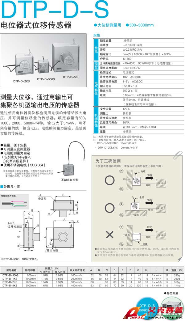 簡介:KYOWA DTP-D-S 電位器式位移傳感器