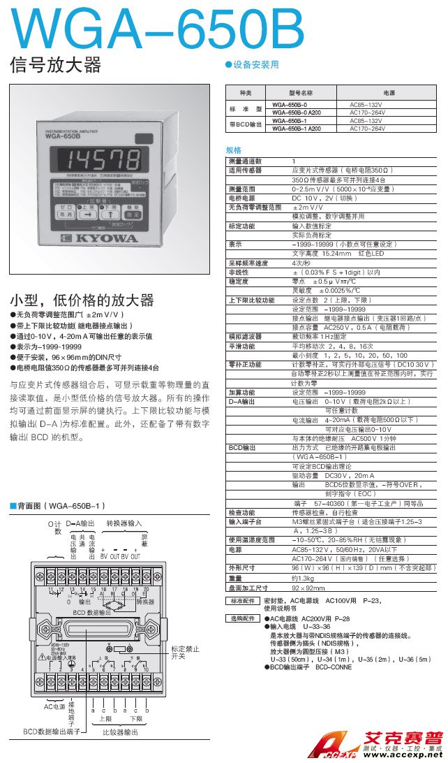 簡(jiǎn)介:KYOWA WGA-650B 小型放大器
