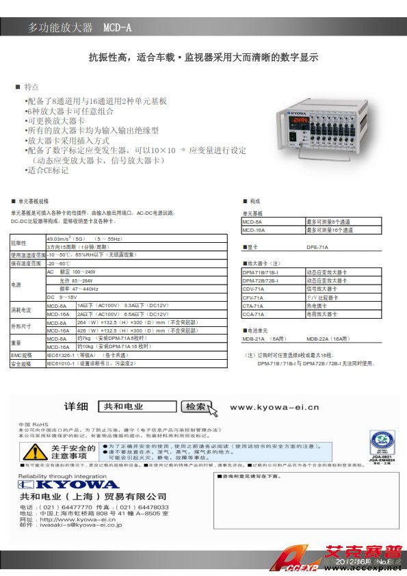 簡介:KYOWA DPM-71B-I/DPM-72B-I 動態應變放大器卡