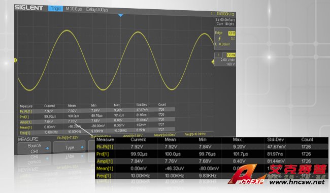 | 自動測量 | 37 種自動測量功能,支持測量統計、Gating 測量、Math測量、History 測量和 Ref 測量 |