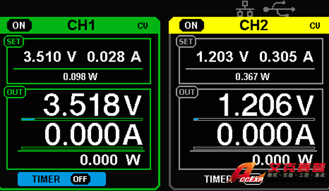 | SPD3303X:電壓 ±(0.03% of reading+10 mV)電流 ±(0. 3% of reading+10 mA) | |