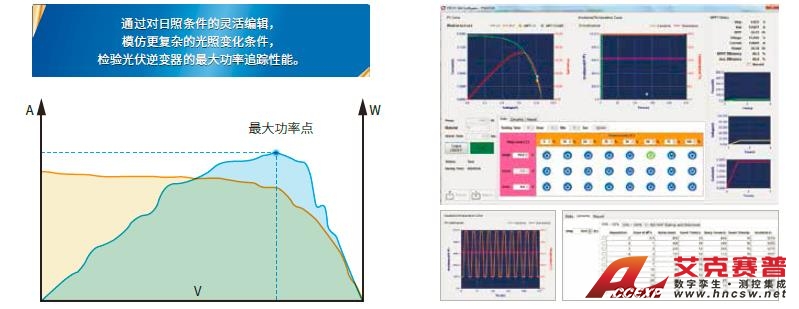 由于太陽能電池利用率不僅與其內(nèi)部特性有關(guān),還受到天氣、季節(jié)、溫度、照度、云遮、下雨和下雪等因素的影響,在不同的時段會具有不同的I-V特性。因此光伏逆變器必須具備應(yīng)對策略,實時調(diào)整太陽能電池的工作點,使之始終工作在最大功率點附近,這一過程就稱之為最大功率點跟蹤MPPT。IT6000PV系列標(biāo)配的太陽能電池矩陣仿真軟件可以在實驗室的測試環(huán)境下,去直接模擬各種真實條件下的太陽能電池陣列,從而測試光伏逆變器的靜態(tài) & 動態(tài)最大功率點追蹤效能。