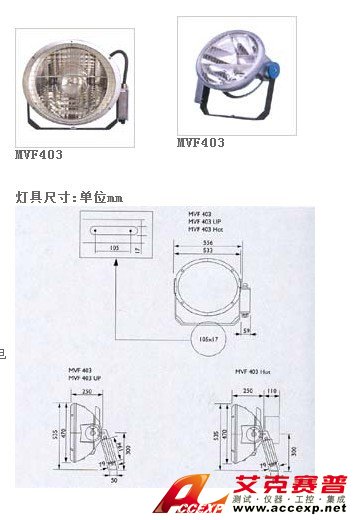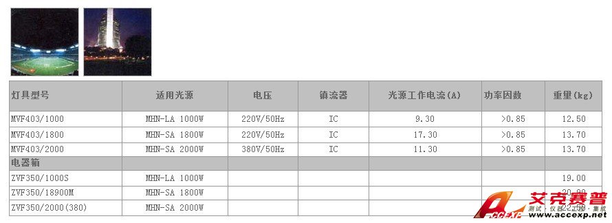 高功率投光燈具(Arena Vision)MVF403系列燈具外形緊湊美觀.風阻系數小.重量輕,全新設計的橢圓形反射器.配光效果好.效率高,7種不同配光的反射器.滿足各種應用要求.并有調光刻度板,有瞄準器.防眩光板.彩色濾光片等多種配件可供選擇,可配1000W/1800W/2000W雙端金鹵燈.光源顯色性Ra=92.色溫5600K.適合現場彩電轉播,背后開啟更換燈泡.附安全開關.維護更加安全方便,有上照型.下照型和熱啟動型供選擇,分離式配電箱.用途廣泛.是飛利浦照明燈具產品的精品之作。