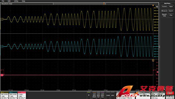 在開(kāi)啟 InstaView 后,AFG31000 顯示 DUT 上觀察到的波形。