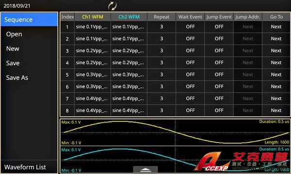 AFG31000 系列是第一個(gè)擁有全功能基本模式(AFG)和高級(jí)(序列)模式的任意波函數(shù)發(fā)生器。