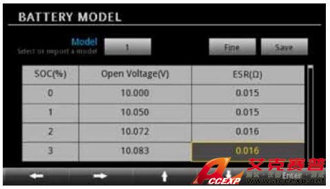 在測試后,可以根據電池充電過程的測量結果生成電池模型。可以以CSV 文件格 式編輯、創建、導入或導出電池模型。