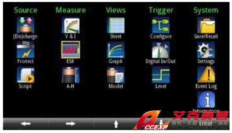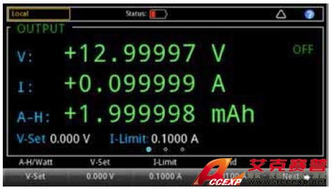 高亮度4.3 英寸TFT 顯示器用大的易讀字符顯示電壓、電流 和安時讀數、源設置及許多其他設置。基于圖標的主菜單提 供了用戶可以控制和設置的所有功能,可以快速進入源設置、 測量設置、顯示格式、觸發選項和系統設置。菜單簡短,所 有選項容易查找且描述清楚,可以使用導航輪、數字鍵盤或 軟鍵迅速設置測試參數。許多設置參數,如電壓和電流設置, 可以直接從主屏輸入;不復雜的測試無需進入主菜單進行設 置,就可以在主屏上使用軟菜單進行調節。不管測試要求簡 單還是復雜,Series 2281S 電源都為設置所有要求的參數提 供了一種簡便方式。