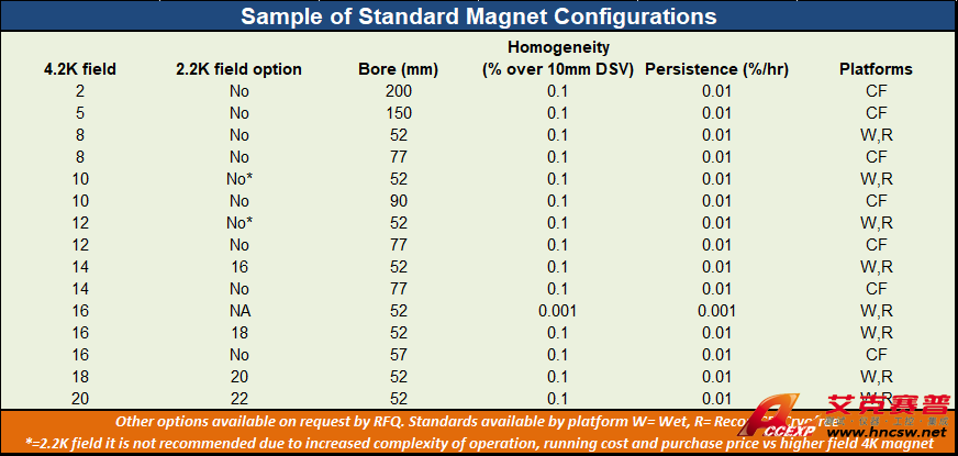 濕式磁體可提供在2 K時達(dá)8-20 T標(biāo)準(zhǔn)選項