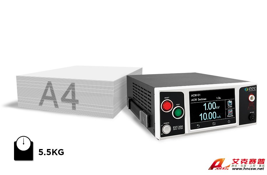 EST-300系列新一代耐壓測試儀擁有先進(jìn)的緊密尺寸設(shè)計,并同時保有其強(qiáng)大的性能。不僅將交流耐壓(ACW)、直流耐壓(DCW)和絕緣阻抗(IR)功能整合到單一的機(jī)臺,其尺寸與重量的輕便優(yōu)勢利于任何空間的擺設(shè)配置。此外,透過儀器互連技術(shù)設(shè)計,更可以擴(kuò)充功能連接接地阻抗(GB)測試儀,從而形成更完整的測試系統(tǒng),提供更全面的安規(guī)測試解決方案。