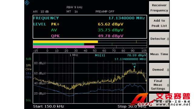 • 將兩種測試儀器集于一體:EMI 測試接收機和頻譜分析儀