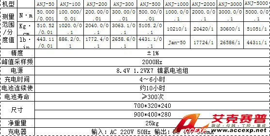 | 測量范圍/分度值 | N·m | 50.000/0.001 | 100.000/0.01 | 200.00/0.01 | 300.00/0.01 | 500.00/0.01 | 1000.0/0.1 | 2000.0/0.1 | 3000.0/0.1 | 5000.0/0.1 |
