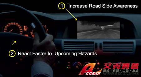 FLIR PathFindIR 車用熱像儀能使駕駛員看得更遠,而清晰度比使用標準前燈時更高。駕駛員能夠探測和監控道路上和道路附近的行人、動物或物體,有更多時間對任何潛在危險做出反應。